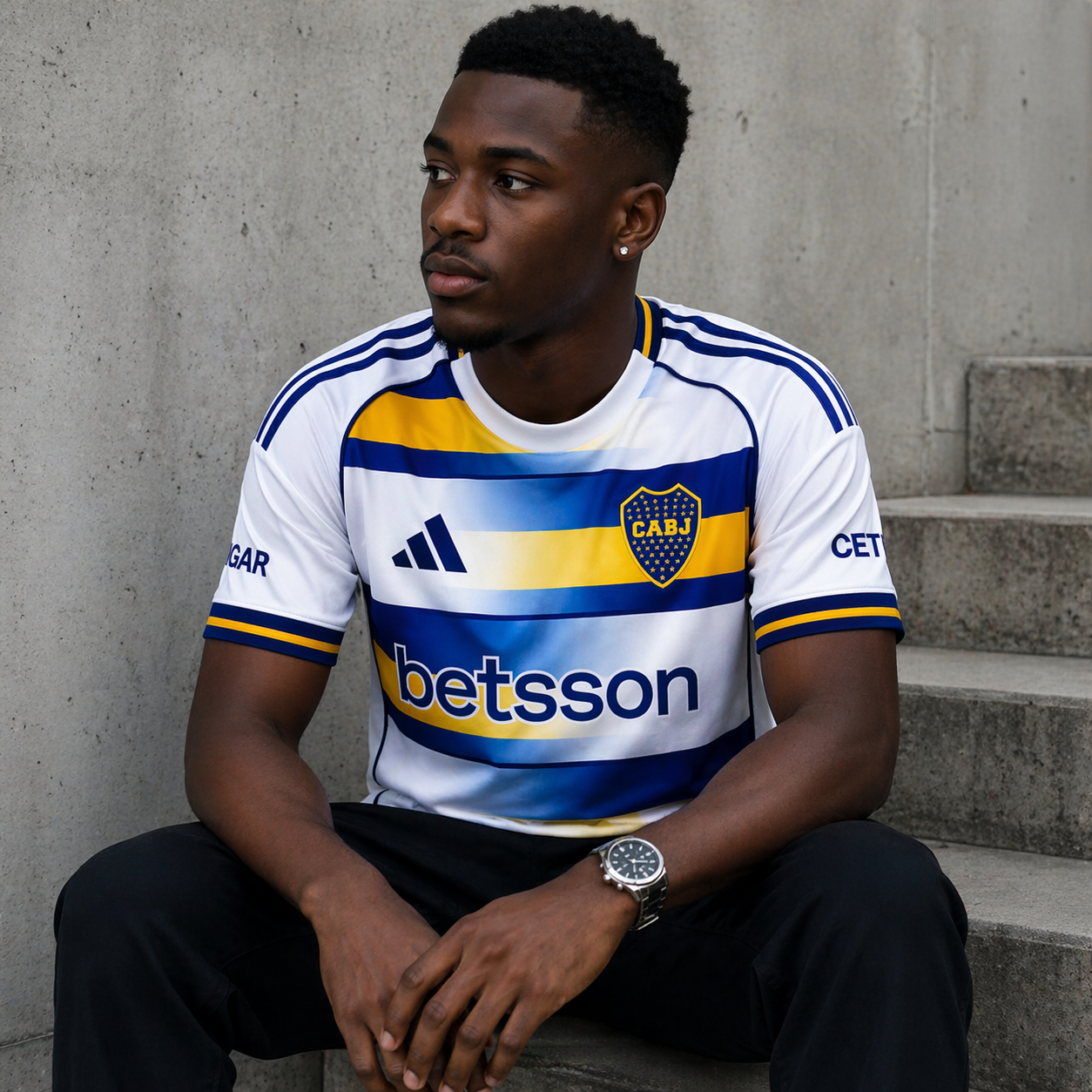 Stand out with the latest Boca Juniors 2026 Third Jersey. Featuring a bold striped design in blue, white, and gold, this kit delivers a premium football look with modern styling.