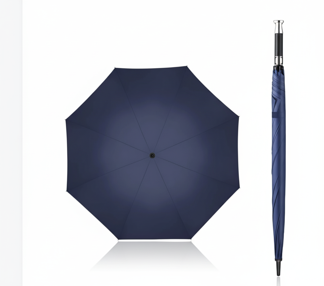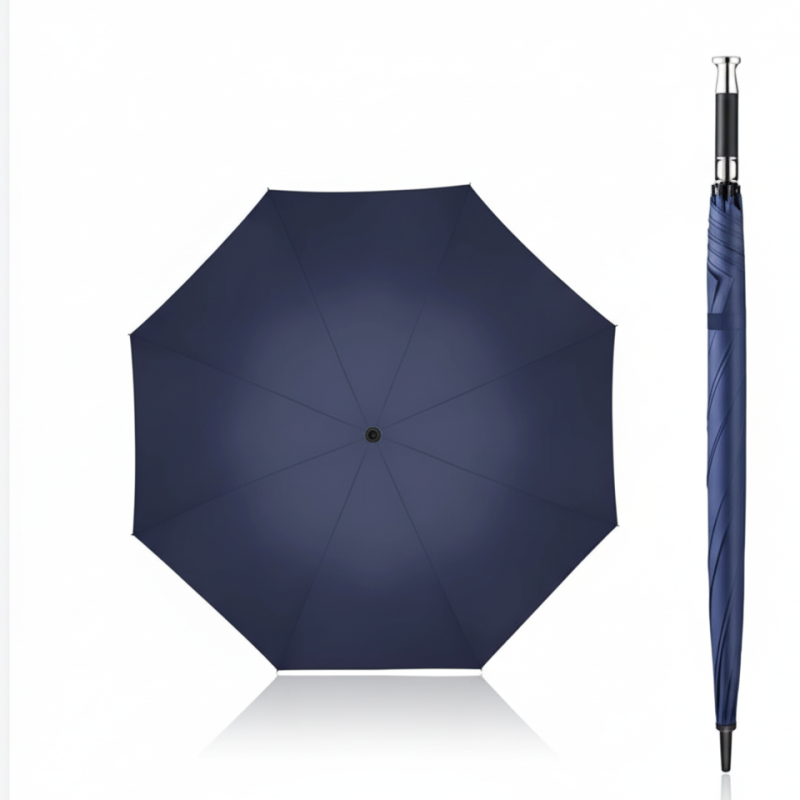 The Casey Handheld Large Black Umbrella features a durable 16-panel design with polyester fabric and a sturdy metal frame for reliable sun and rain protection. Its 98cm diameter and 76cm closed length provide ample coverage while remaining compact and easy to carry. Equipped with an auto-open metal frame and a comfortable PVC handle, this umbrella combines convenience and durability in a stylish retail-packaged product.