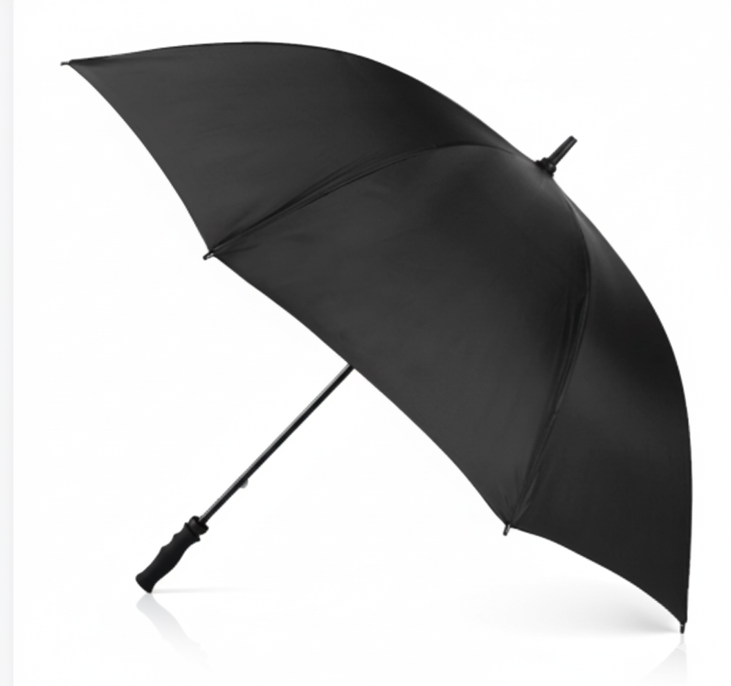Casey Handheld Large Black Umbrella-16-Panel Design, Polyester Fabric , Metal Frame , PVC Handle, 98cm Diameter , 76cm Length Of Umbrella When Closed, Auto Open Metal Frame- Ideal For Sun And Rain Protection, Retail Box No Warranty.