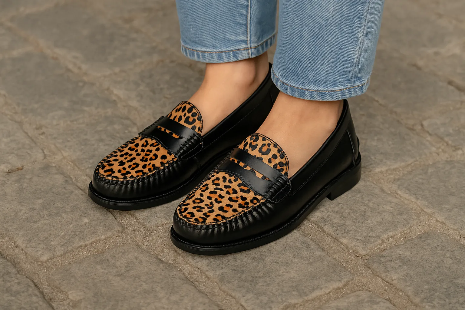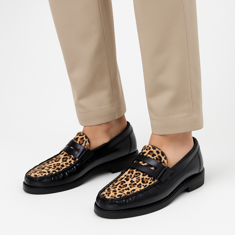 Premium genuine leather upper with leopard-print detailing.