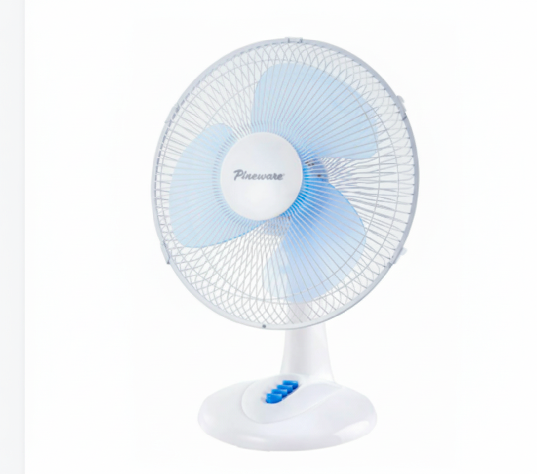 •Description: Pineware 30cm White Plastic Desktop Fan