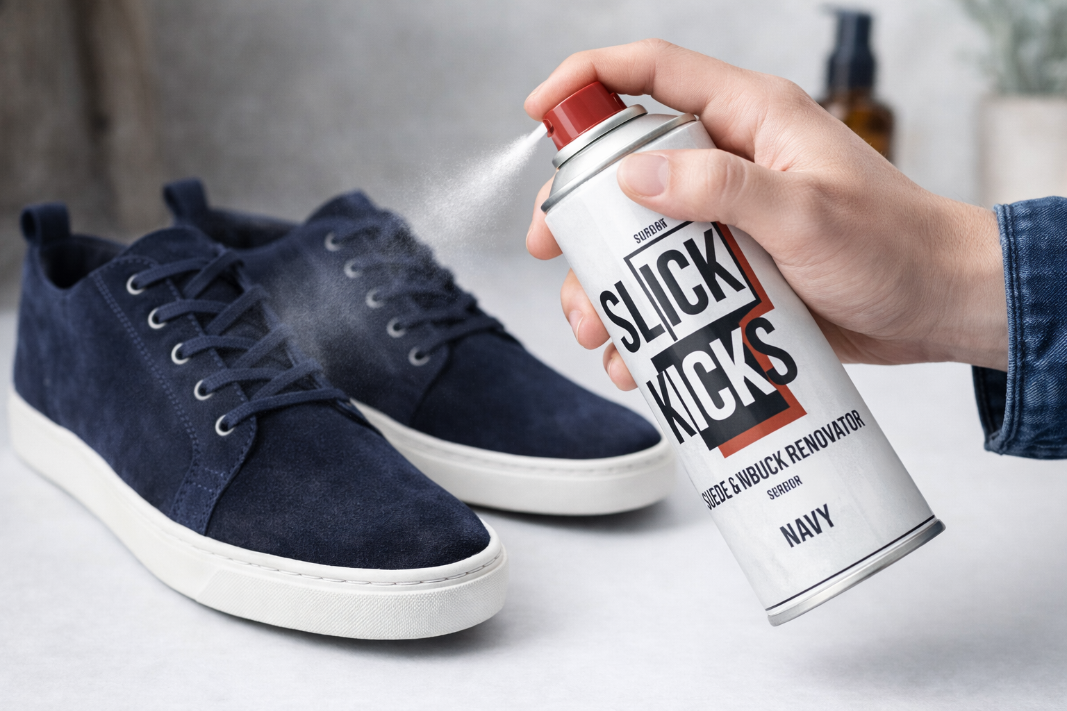 The Slick Kicks 427 Suede & Nubuck Renovator Spray – Navy is designed to restore rich navy colour while improving the appearance of worn suede and nubuck footwear.