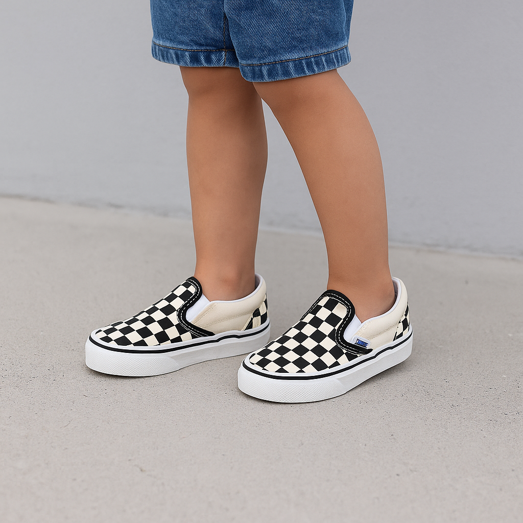 The Vans Classic Slip-On Checkerboard in black and white delivers timeless Vans style for the next generation. This kids’ edition keeps the same iconic look loved by skaters and streetwear fans worldwide — easy to wear, lightweight, and perfect for everyday adventures.