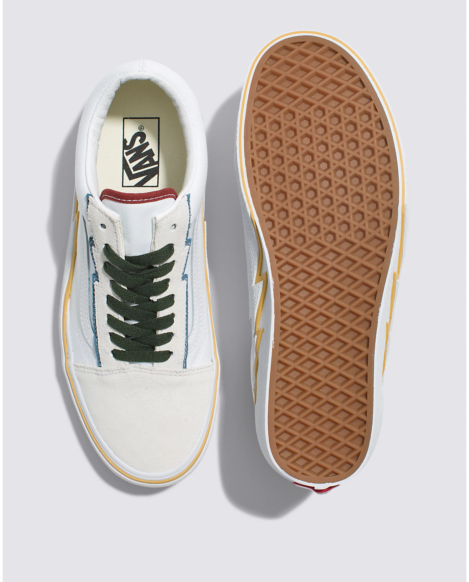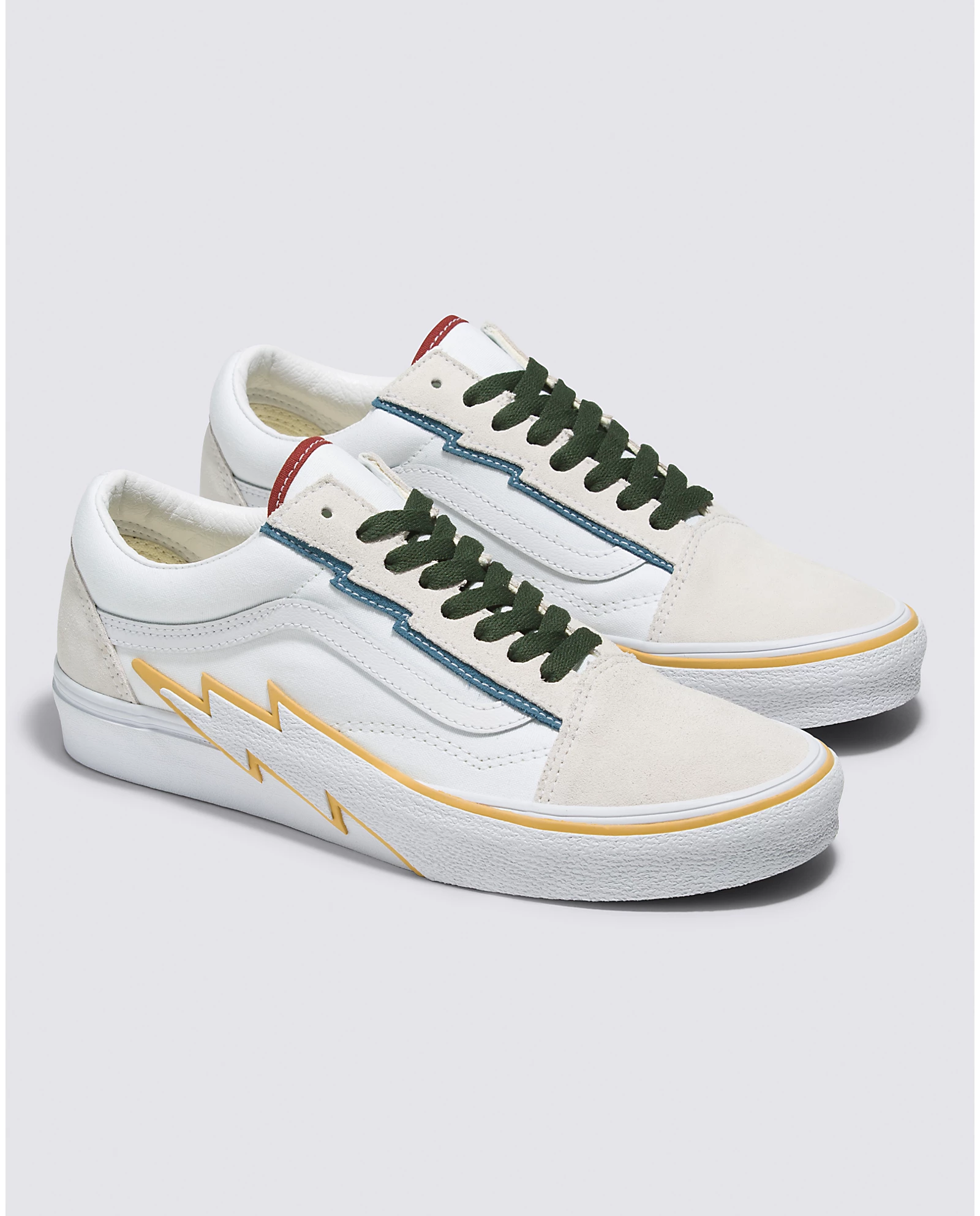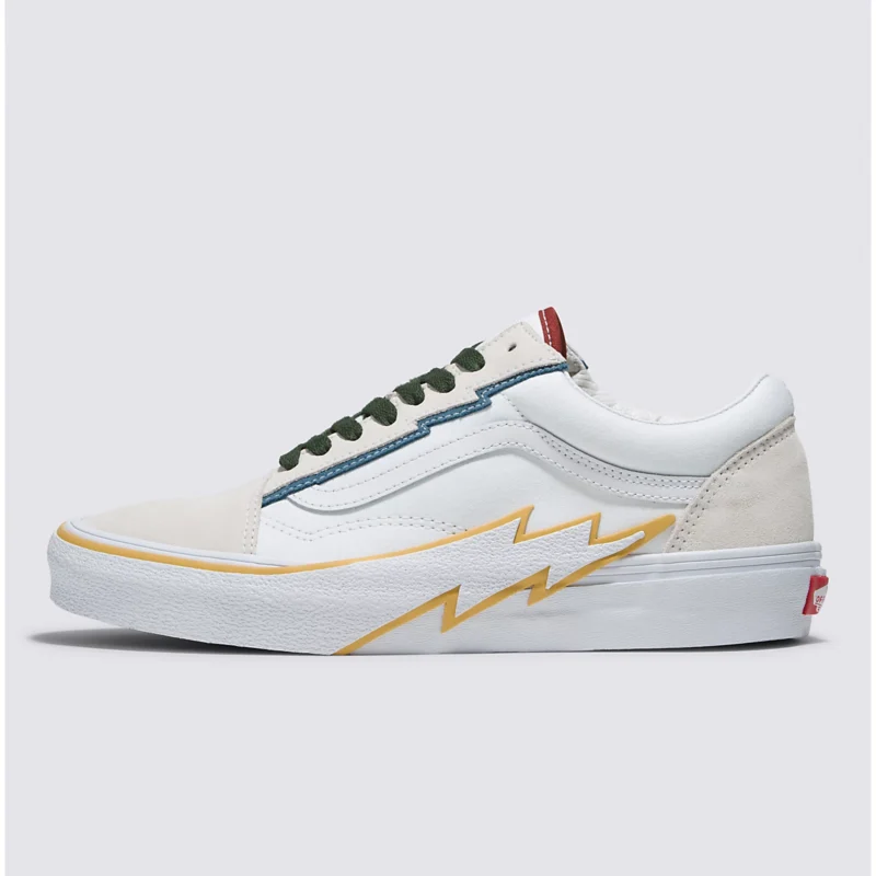 The Vans Old Skool Bolt Multi True White brings an electrifying twist to the legendary Vans design. With its striking lightning bolt side detail, multi-color accents, and signature waffle outsole, this shoe delivers a mix of heritage style and modern energy. Built with durable canvas and suede for comfort and attitude — whether you’re skating, styling, or stepping out.